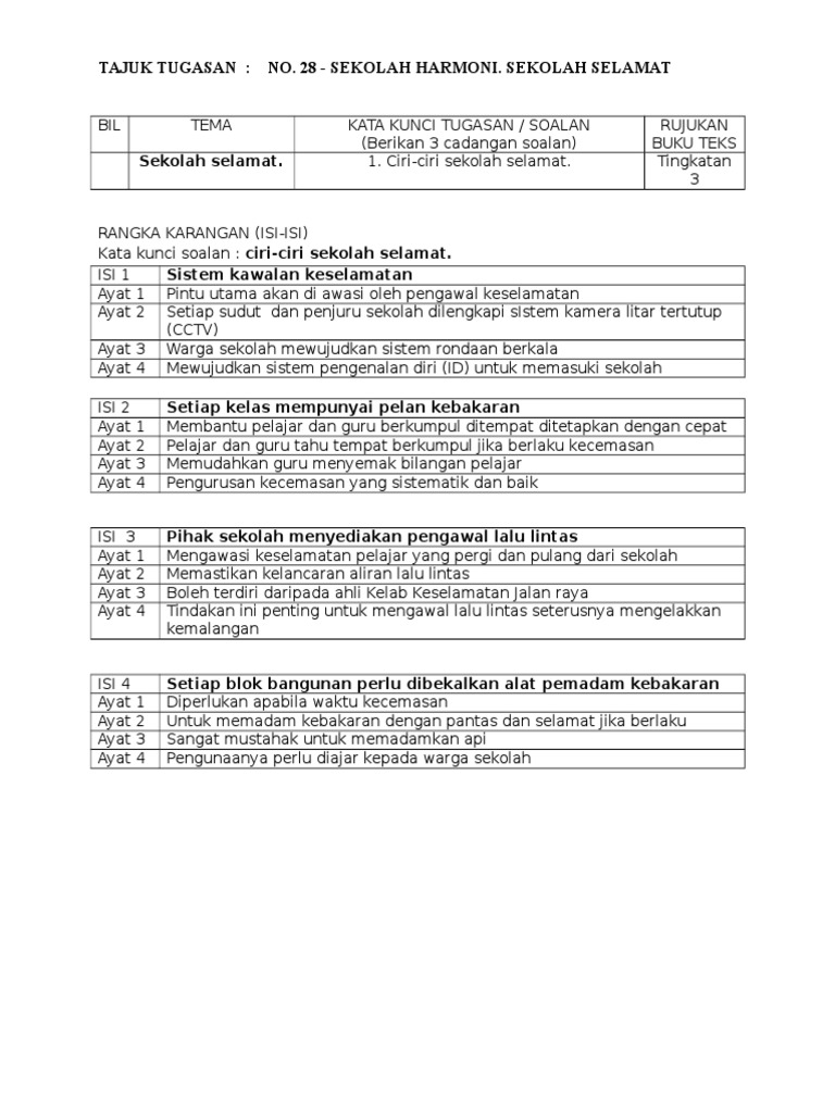 Latihan Karangan Bergambar SPM Ciri-ciri sekolah selamat. Sekolah ini dikelola oleh Yayasan Harmoni Sejahtera. Berdasarkan maklumat yang terdapat dalam carta tersebut tulis ulasan yang panjangnya antara 80 hingga 100 patah perkataan.